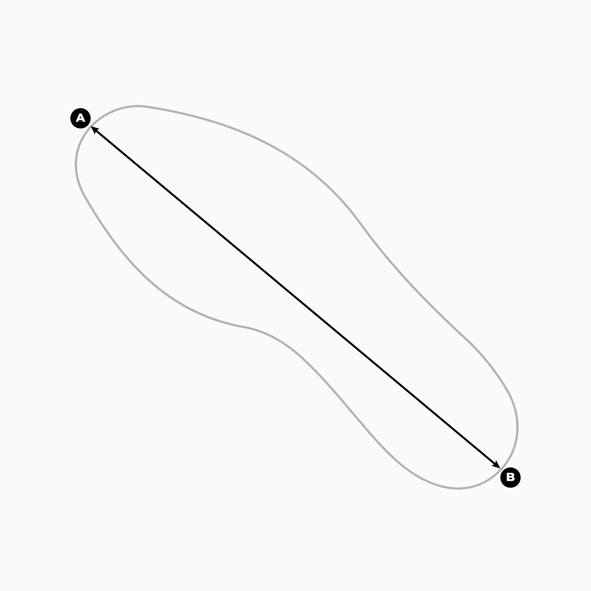 2. Označte si špičku stielky (najvzdialenejší bod na špičke) a zadnú časť päty.